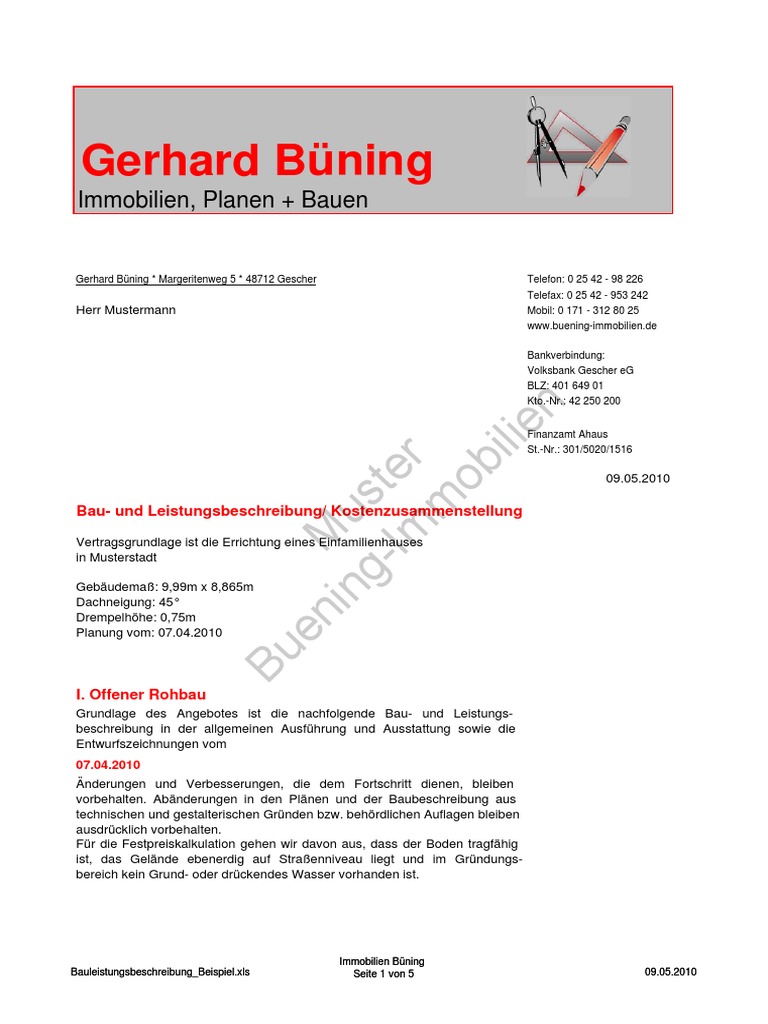 / Nebenabrede Zum Bauvertrag Muster - Https Bausachverstaendige Info Wp Content Uploads 2016 02 Werkvertrag Bauvertrag Pruefen Baubeschreibung Pdf